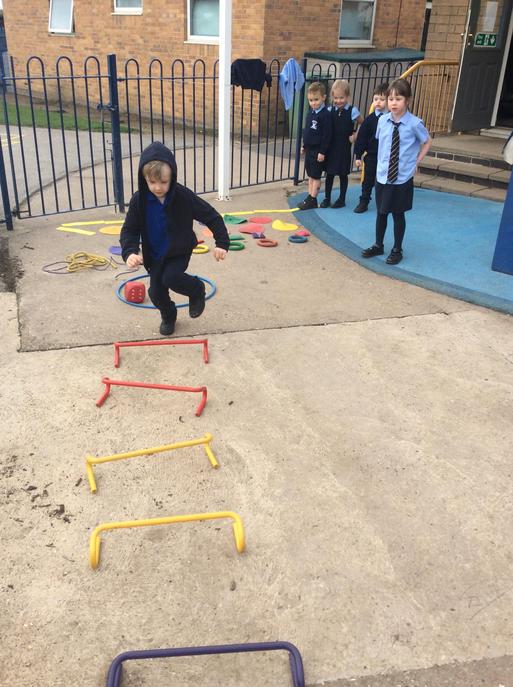 The Reception pupils take part in dedicated PE lessons each week. They also have the opportunity to develop PE skills in their outdoor provision and in the drier weather, the use of the trim trail develops gross motor skills.