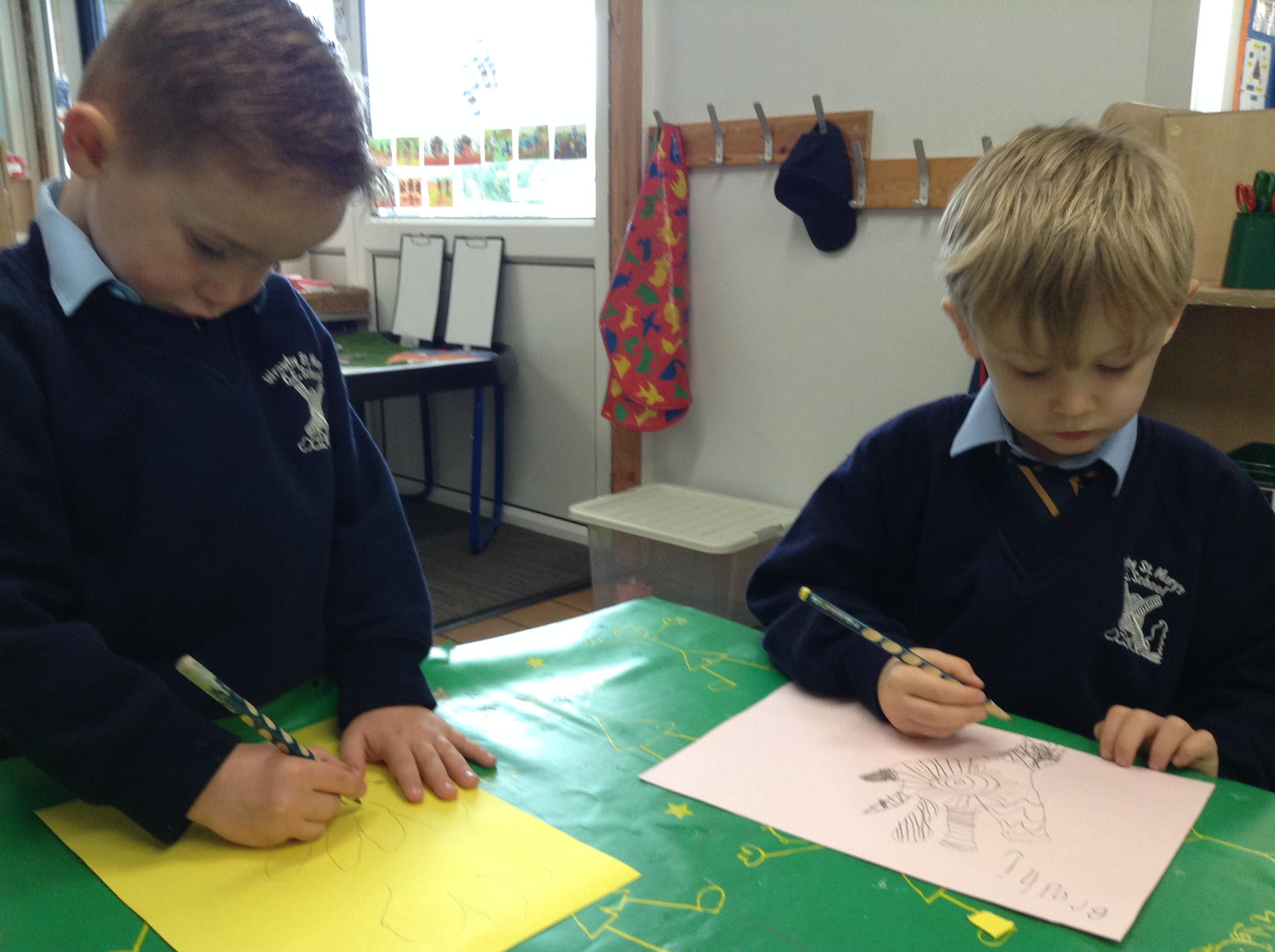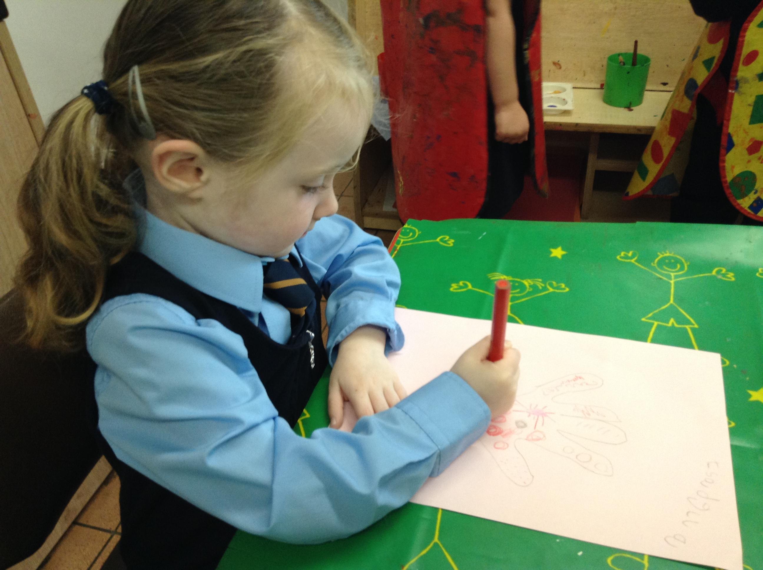 we use as a basis to teach various writing genres. We ensure that we develop writing progression from developing fine motor skills, pencil control, writing CVC words and we build up to writing simple sentences. We use the talk for write strategies to story map and orally retell familiar stories. We use some of the strategies used by the wider school community in terms of looking at vocabulary in the text, building a sentence and holding a sentence. This ensures that the children have the skills to prepare