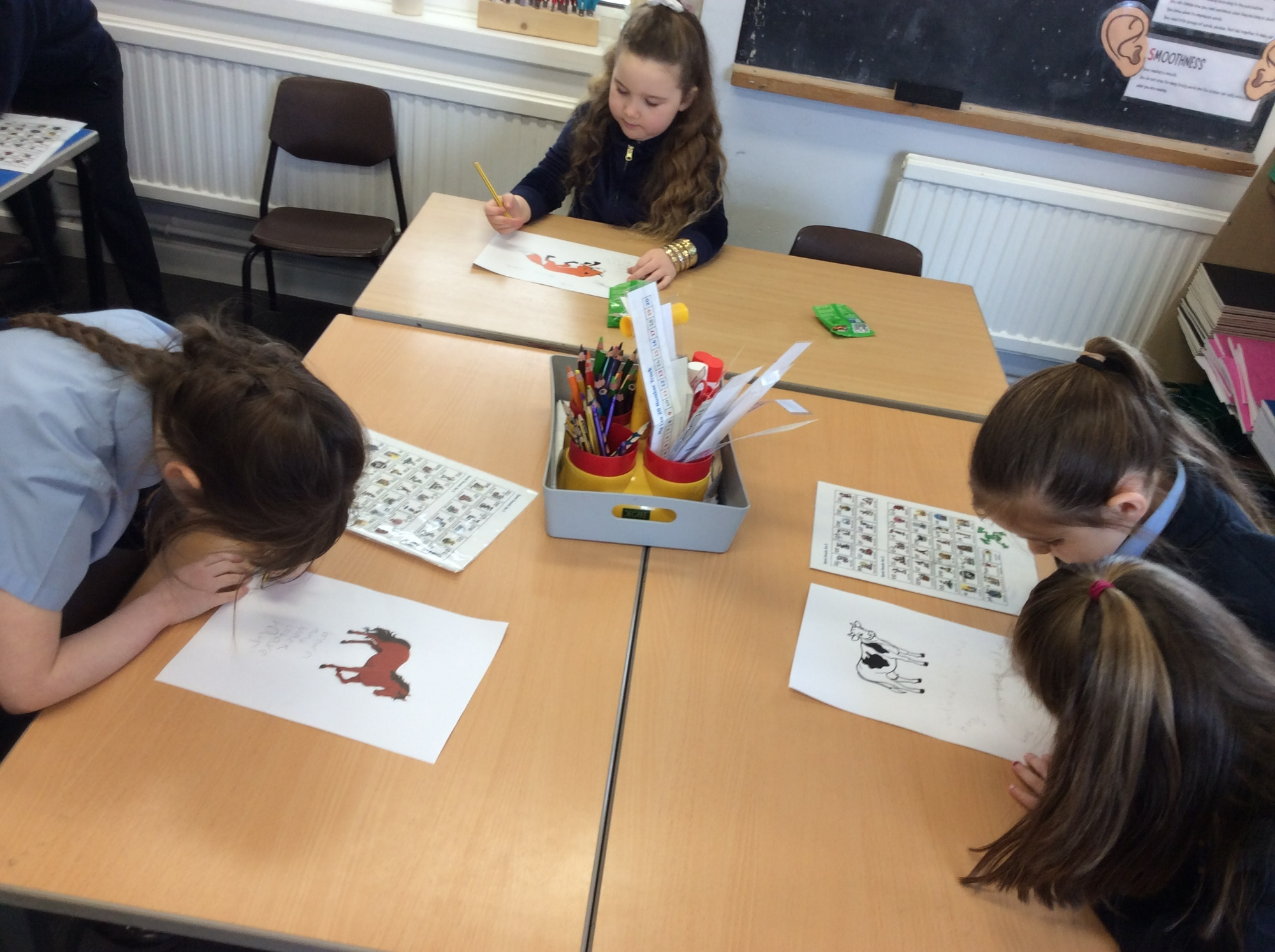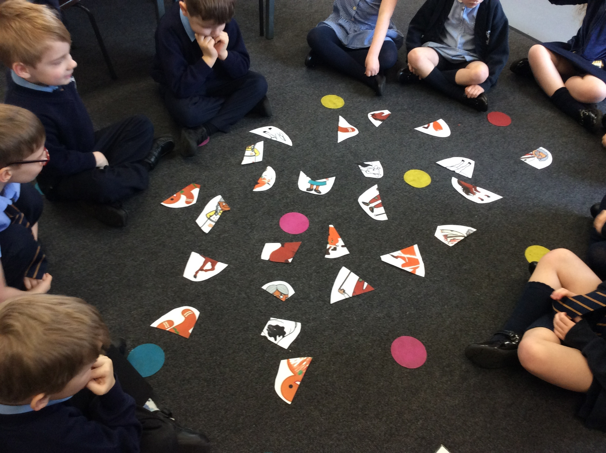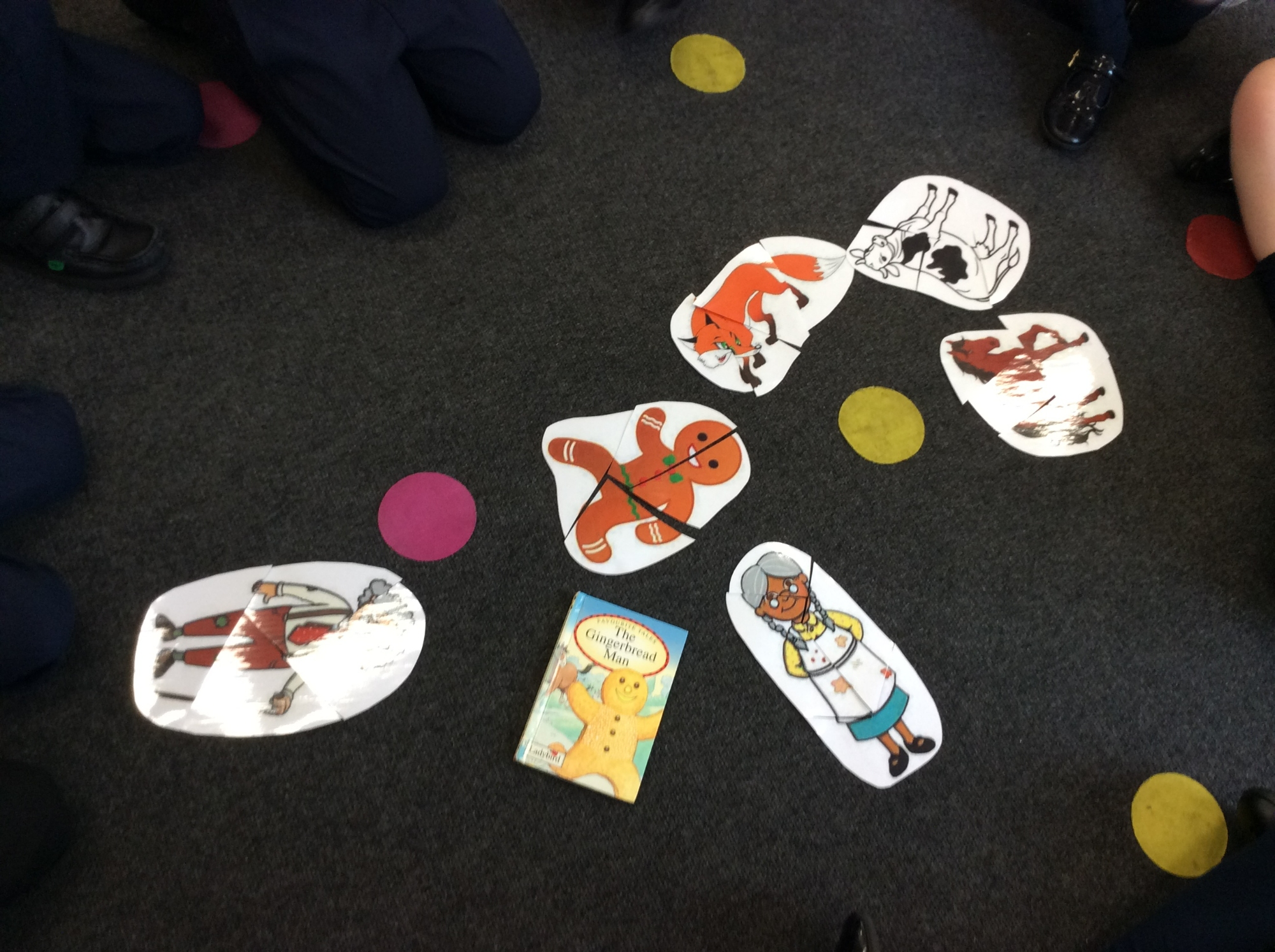 This week in English, the children completed jigsaw puzzles to find out who the characters were in our new text. They found a little old woman, a little old man, a horse, a cow, a fox and a gingerbread man! They then worked together to compose a list of vocabulary linked to each of these characters that they will take forward to use in their writing.