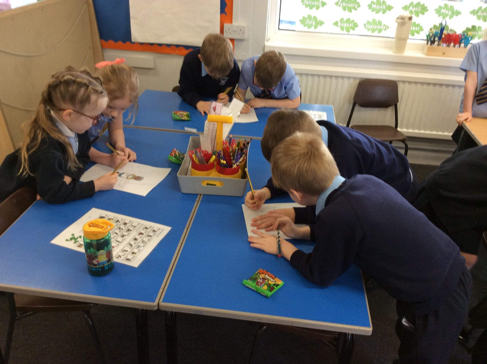 Class 1 start their learning as soon as they enter the classroom in the morning. After they have independently put away their belongings, they start their morning task. Reception are writing a short caption using a picture stimulus. They are doing well remembering to use finger spaces. Year 1 complete 5 maths questions based on retrieving their knowledge from previous maths teaching. Well done Class 1.