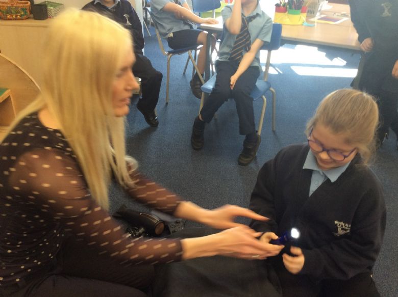 On Wednesday morning during our English lesson, the lights were dimmed and there was a mysterious knock on the door. This was the start of our new English writing hook linked to the book, 'Stig of the Dump' by Clive King.