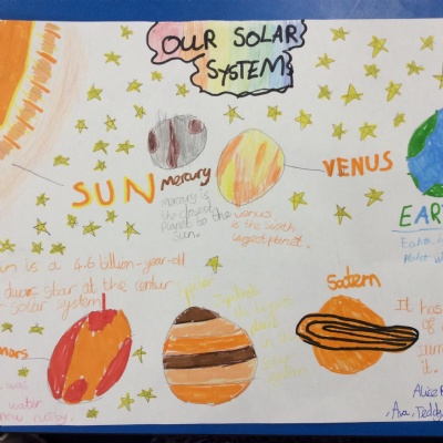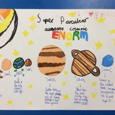 We had a visit from the Planetarium this week. In the time before and after our session, we worked in groups to create a poster about the Solar System and then presented it to the rest of the class!