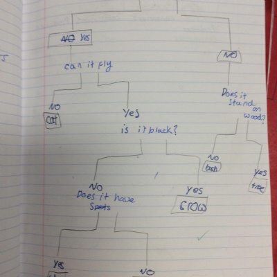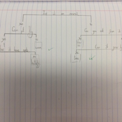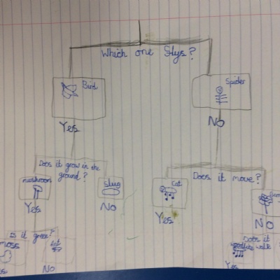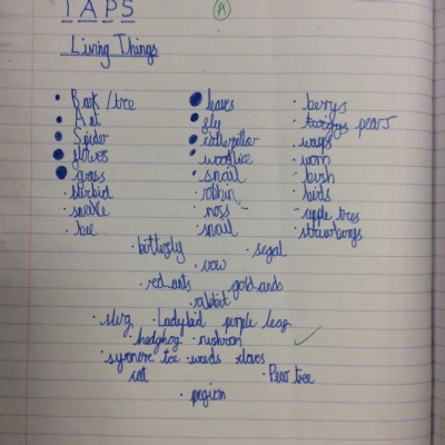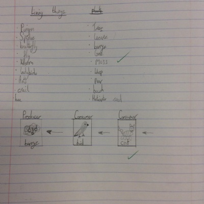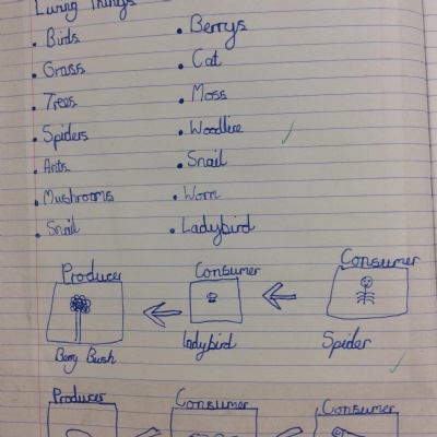 This week, we did our end of unit assessment for Science. For this, we went round the school grounds to find what living things we could find. We also talked about what we might have seen before (e.g. squirrels, cats) that weren't here currently, but also what might be around in different seasons (e.g. daffodils in spring). We then used this list of living things to create a food chain and a classification key to demonstrate our understanding of living things and grouping them.