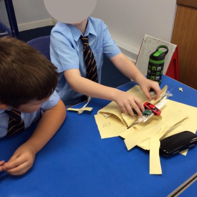 This week, the children were challenged to create a bridge that could hold three toys cars on. They were given paper, tape, glue and scissors to create this. The children worked in pairs or threes to come up with an idea and execute their plan. It was wonderful to see such great teamwork skills amongst the groups and how they problem solved when a test run went wrong! Take a look at the photos and see which bridges were successful!