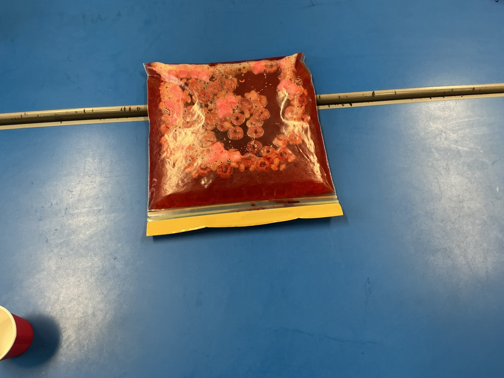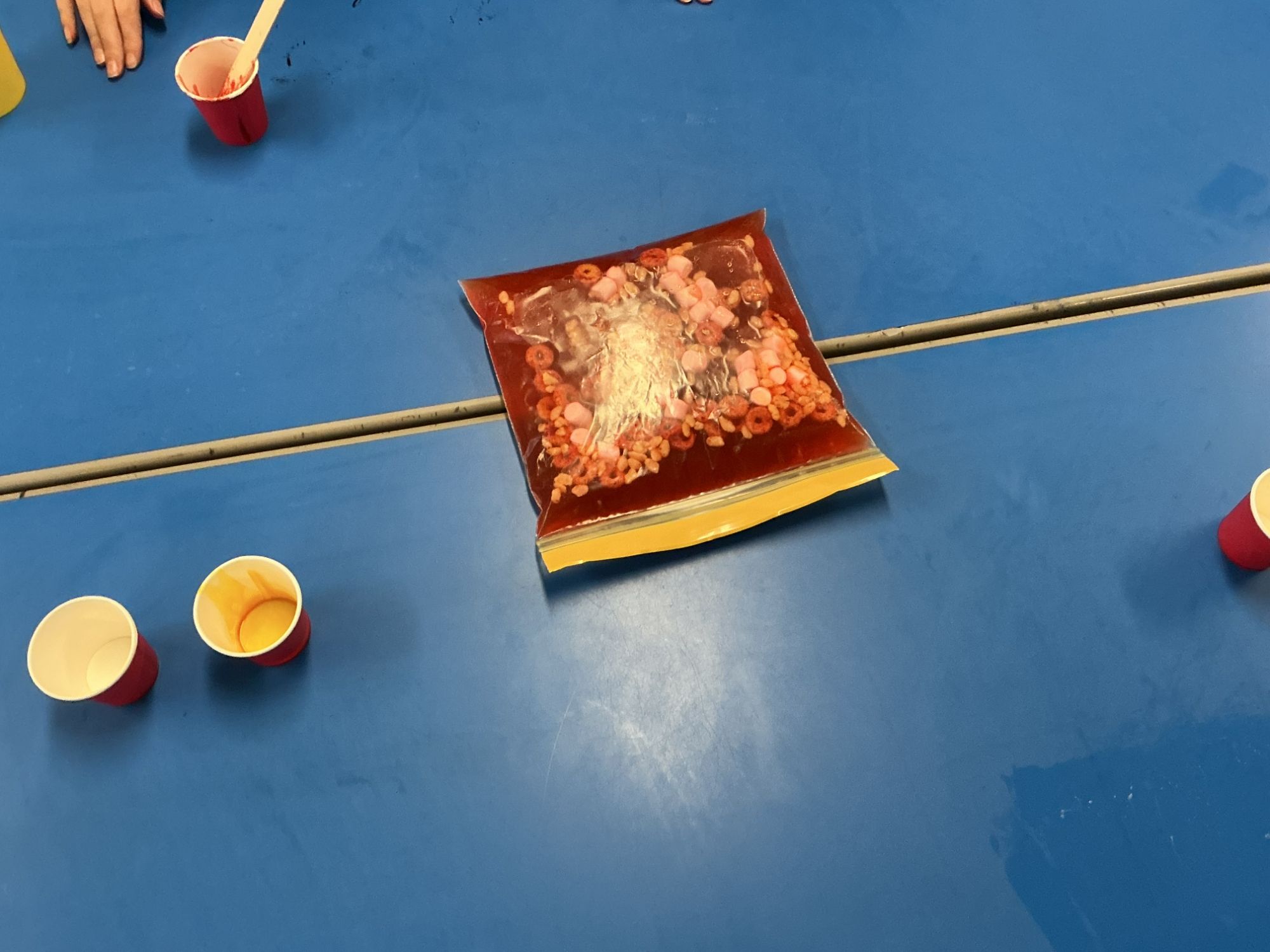 This week in Science, we looked at the role of blood in our body. We learnt that the red blood cells carry oxygen around our body, the white blood cells fight infection, platelets help heal our wounds, and the plasma helps transport all of those cells, plus nutrients, around our body. To help with our understanding, we made our own blood using water, food colouring, cereal and marshmallows to represent the different parts of blood. See if your child can tell you which is which!