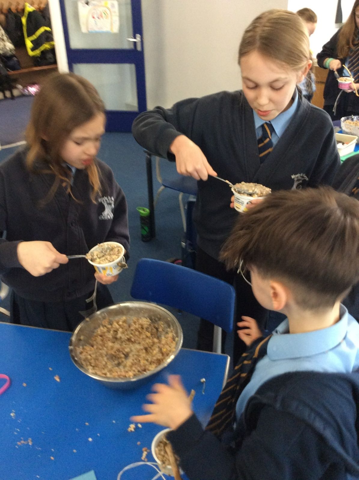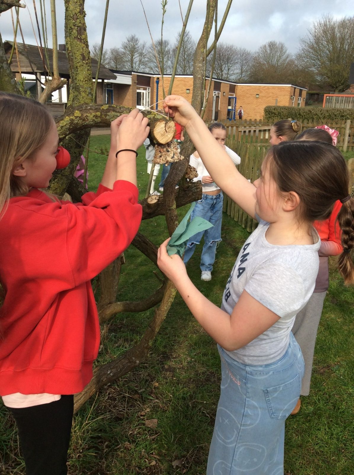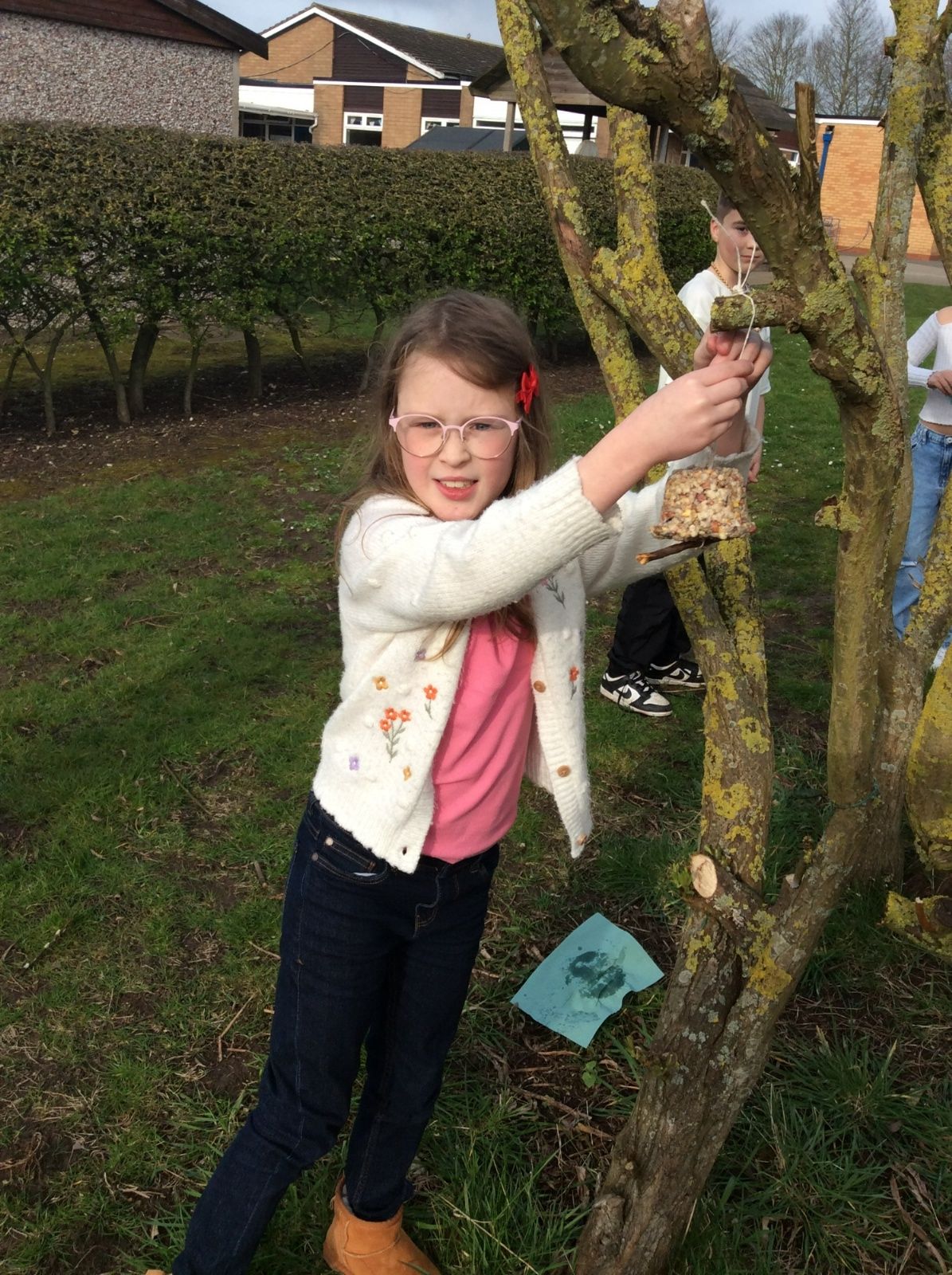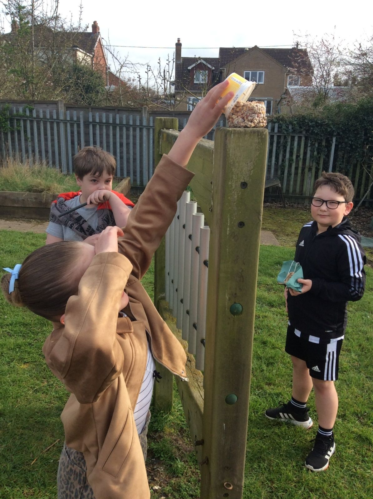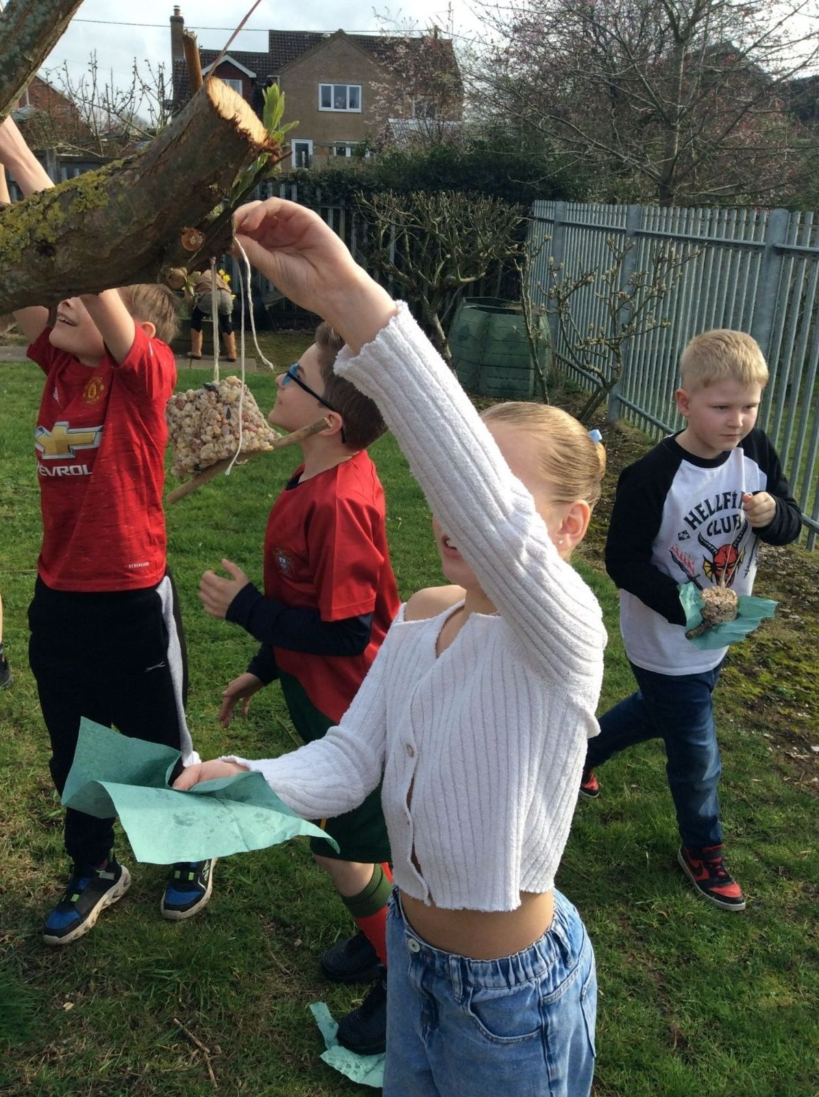 This week is Science related again! We have been thinking about how we can help the birds in our local area. Using bird seed, peanuts, mealworms and lard, we have created a healthy concoction for our local birds to eat. We also used some DT skills, collecting sticks, tying string to them, making a hole in the pot and threading it through. Once set, the pots will – hopefully – be removed. The string is for hanging them in the wildlife area and the stick is to allow the birds to sit on while eating. We had so much food left, we made some without sticks too! These could sit on a bird table or a wall instead.
