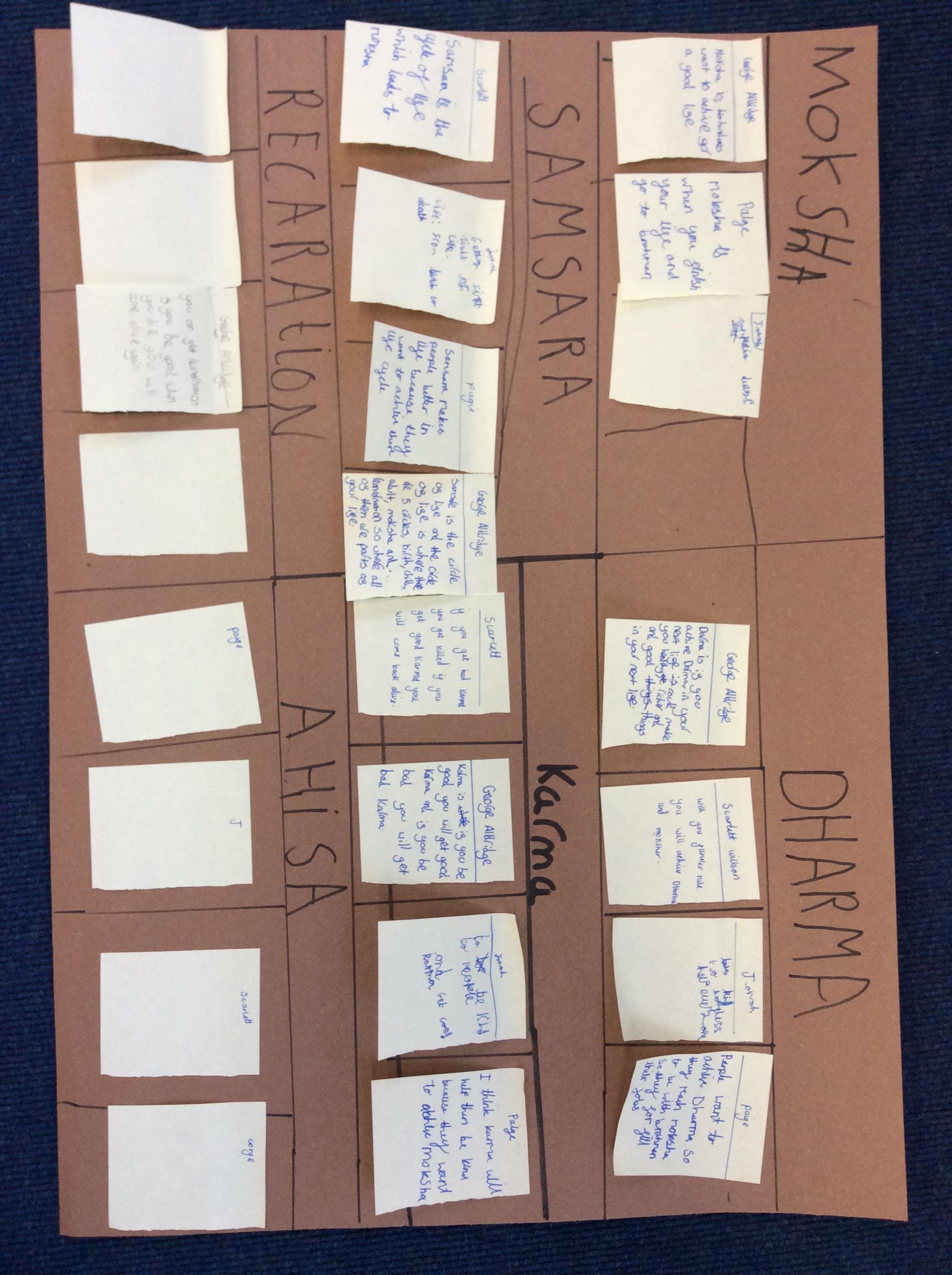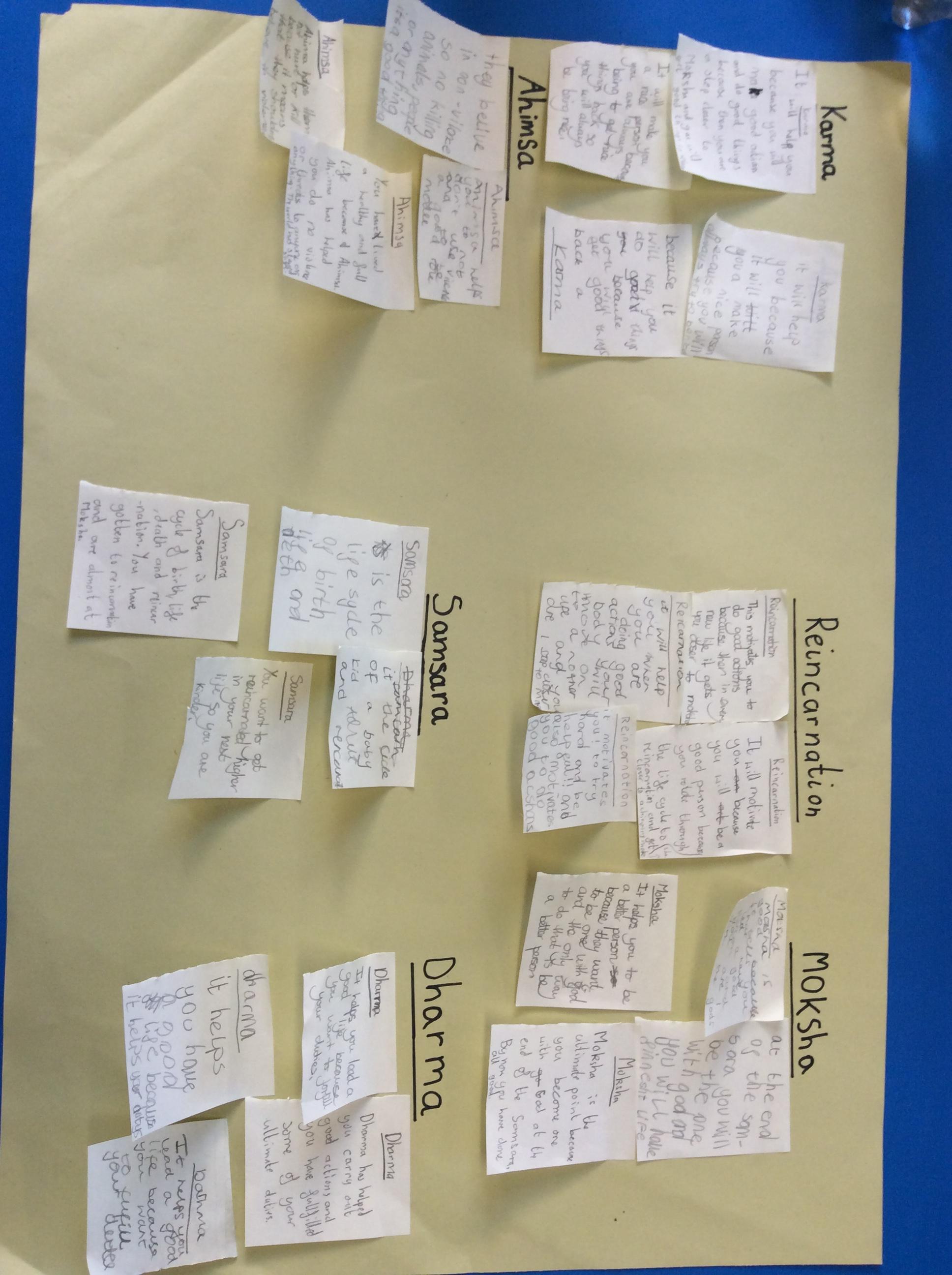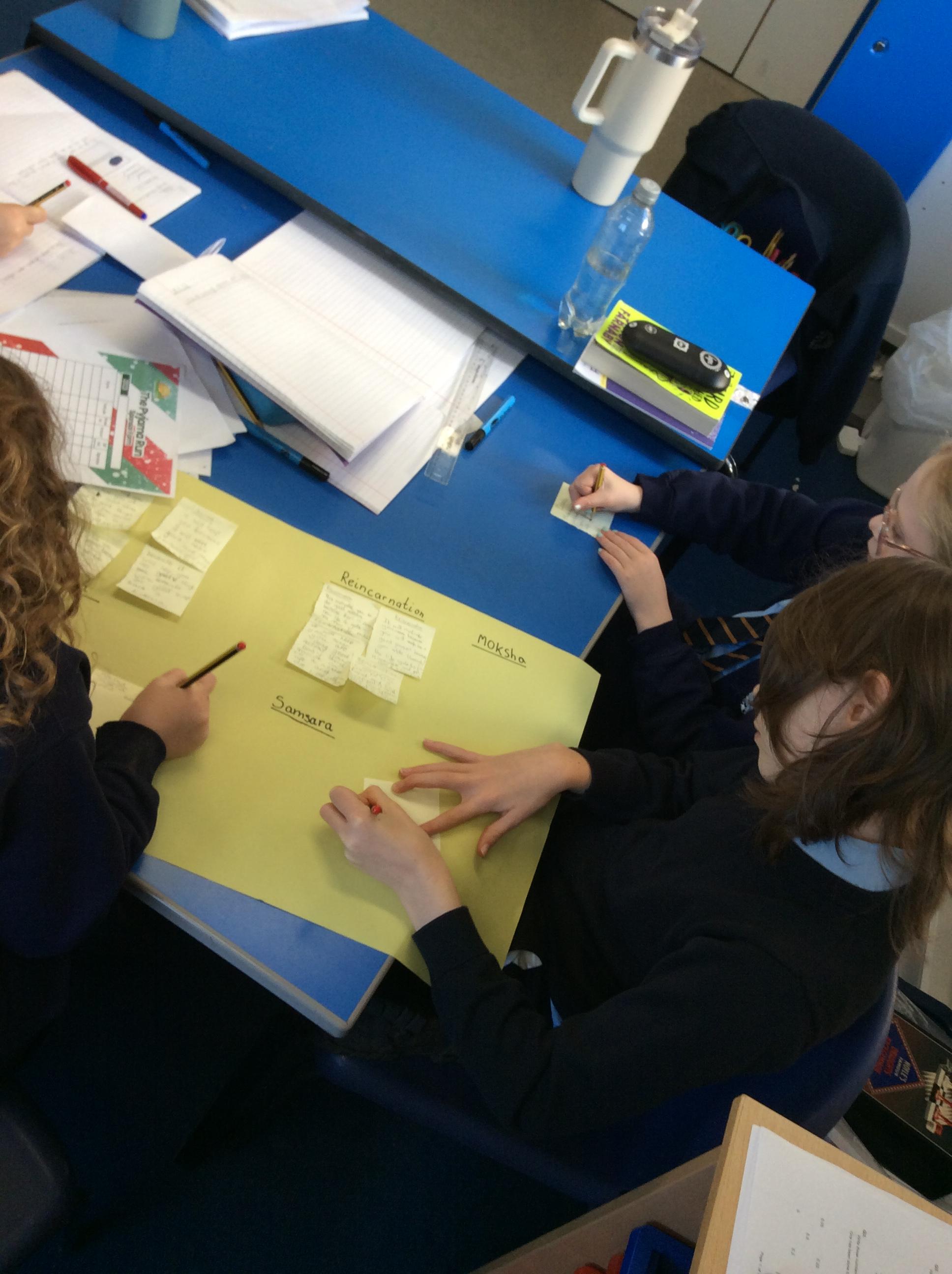 This week class 4 worked well in groups thinking about how Hindu key beliefs impact upon their actions.